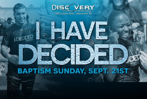To learn more about Baptism and what it truly means we’d encourage taking a look/listen to our “I Have Decided” series. You can listen here on our website’s media page, or use our Discovery Church App while you are on the go.